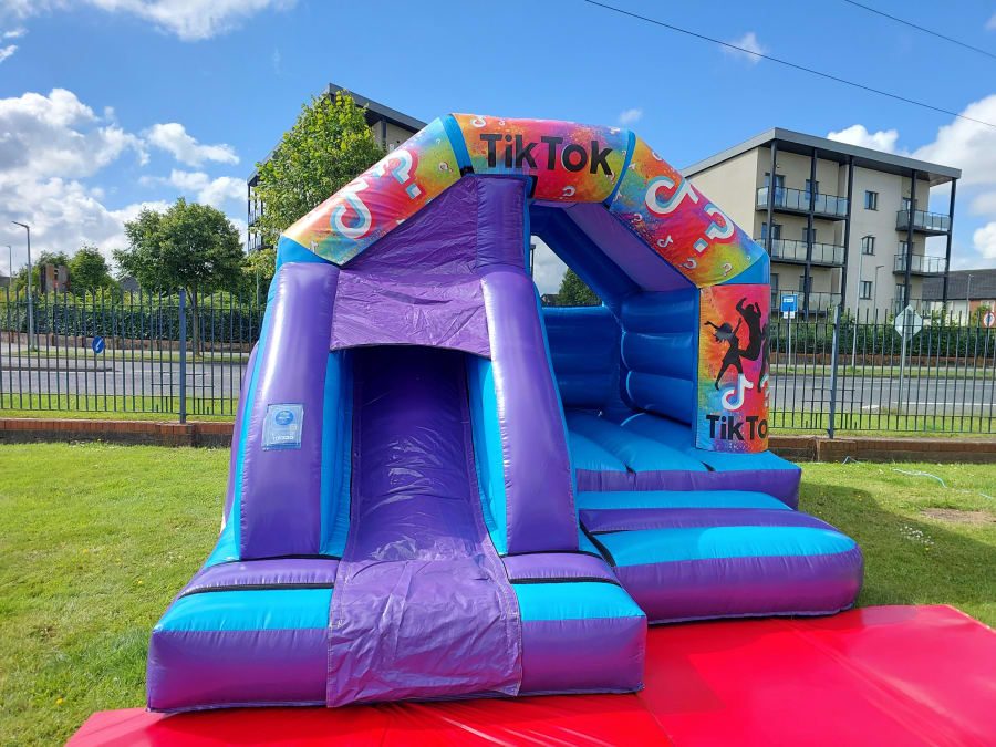 To book this TikTok themed bouncy castle, just use the green button below - you can even check its availability against our live diary. Our innovative online booking system collects all the information we require, and we will confirm your details with a phone call. Or, if you have any questions about this or any other our bouncy castle, or anything other services we offer, call us now on 0899549583!
